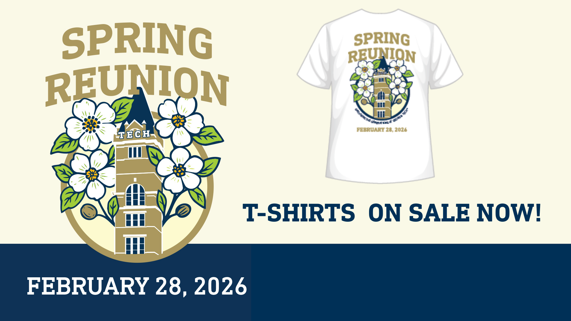 Arrive in style! Order your commemorative Spring Reunion t-shirt by midnight (ET) on Wednesday, Feb. 11 to have it delivered to you in time to wear on Saturday, Feb. 28. This festive, limited-edition design is the perfect way to show off your Yellow Jacket pride.